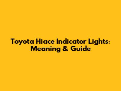Toyota Hiace Indicator Lights: Meaning & Guide