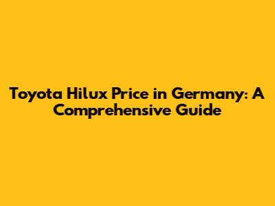 Toyota Hilux Price In Germany: A Comprehensive Guide