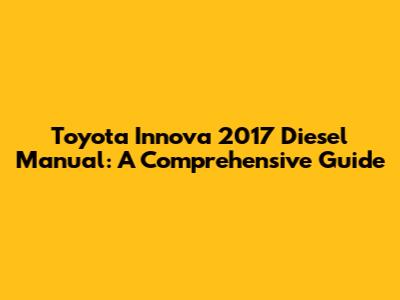 Toyota Innova 2017 Diesel Manual: A Comprehensive Guide