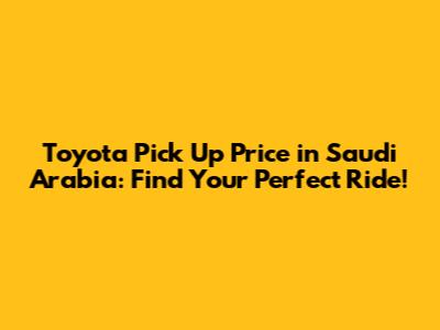 Toyota Pick Up Price In Saudi Arabia: Find Your Perfect Ride!