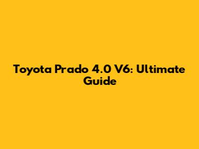 Toyota Prado 4.0 V6: Ultimate Guide