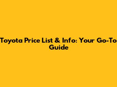 Toyota Price List & Info: Your Go-To Guide