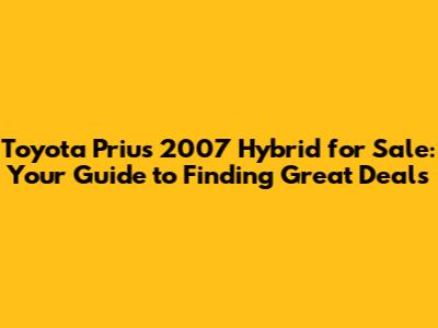Hey guys! Are you on the hunt for a reliable and fuel-efficient ride? Thinking about snagging a Toyota Prius 2007 hybrid for sale? You've come to the right place! This article is your ultimate guide to navigating the used car market, specifically focusing on finding the best deals on this iconic hybrid. We'll cover everything from the benefits of owning a 2007 Prius to what to look for when buying a used hybrid and where to find those hidden gems. Let's dive in and get you cruising in your very own Prius!