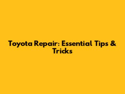 Toyota Repair: Essential Tips & Tricks