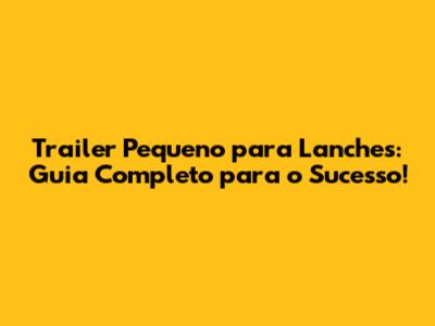 Trailer Pequeno Para Lanches: Guia Completo Para O Sucesso!