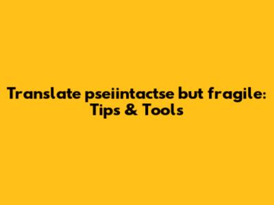 Translate 'pseiintactse But Fragile': Tips & Tools