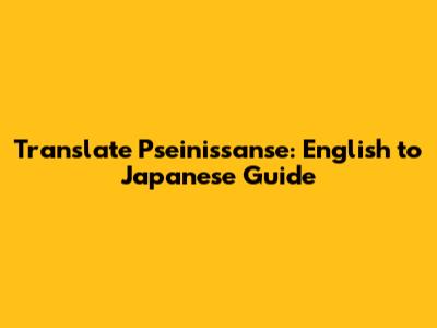 Translate Pseinissanse: English To Japanese Guide