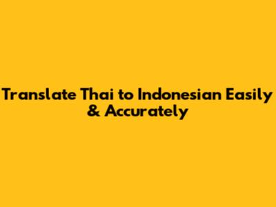 Translate Thai To Indonesian Easily & Accurately