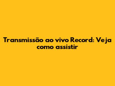 Transmissão Ao Vivo Record: Veja Como Assistir