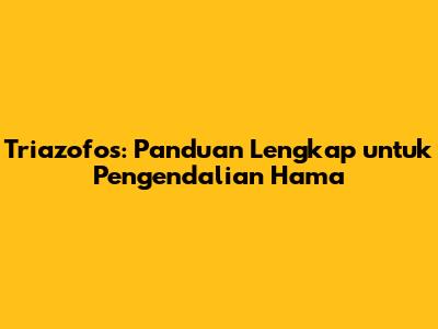 Mengenal Lebih Dalam tentang Triazofos