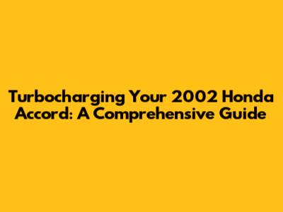 Turbocharging Your 2002 Honda Accord: A Comprehensive Guide