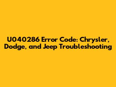 Hey guys, if you're here, chances are you've encountered the dreaded U040286 error code on your Chrysler, Dodge, or Jeep. Don't sweat it too much – we're going to break down what this code means, why it pops up, and most importantly, how to fix it. This error can be a real headache, but understanding it is the first step towards getting your ride back on the road. We'll delve into the specifics of this issue and provide you with actionable steps to diagnose and resolve it.