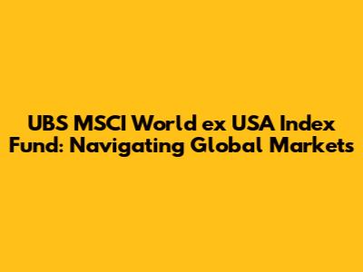 Hey there, finance enthusiasts! Ever wondered how to dip your toes into the global market without the hassle of picking individual stocks? Well, you're in the right place! We're diving deep into the UBS MSCI World ex USA Index Fund, a powerful tool for diversifying your portfolio and potentially boosting your returns. Think of it as your investment compass, guiding you through the exciting – and sometimes tricky – world of international investing. In this comprehensive guide, we'll break down everything you need to know, from what the fund is all about to how it could fit into your financial strategy. So, buckle up, grab your favorite beverage, and let's get started!