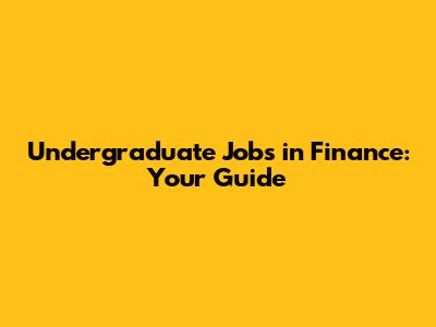 Undergraduate Jobs In Finance: Your Guide