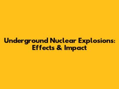 Underground Nuclear Explosions: Effects & Impact