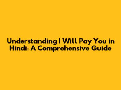Understanding 'I Will Pay You' In Hindi: A Complete Guide