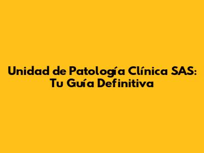 Unidad De Patología Clínica SAS: Guía Completa