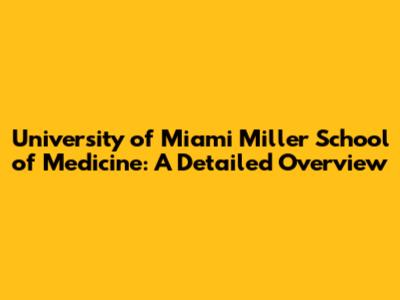 University Of Miami Miller School Of Medicine: A Detailed Overview