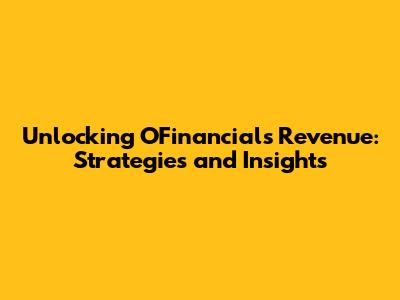 Unlocking OFinancial's Revenue: Strategies And Insights