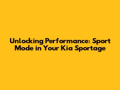 Unlocking Performance: Sport Mode In Your Kia Sportage