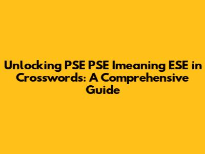 Unlocking 'PSE PSE Imeaning ESE' In Crosswords: A Comprehensive Guide