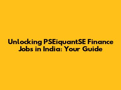 How to Find PSEiquantSE Finance Jobs in India