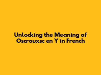 Unlocking The Meaning Of Oscrouxsc En Y In French