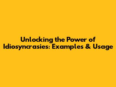 Unlocking The Power Of 'Idiosyncrasies': Examples & Usage