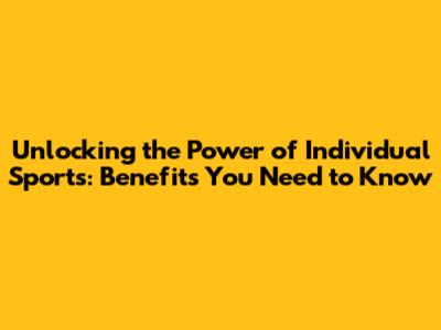 Unlocking The Power Of Individual Sports: Benefits You Need To Know