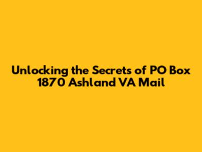 Unlocking The Secrets Of PO Box 1870 Ashland VA Mail