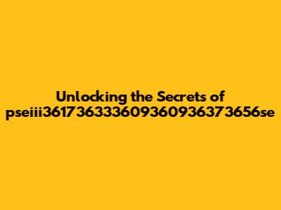 Unlocking The Secrets Of Pseiii361736333609360936373656se