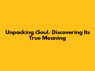 Unpacking 'iSoul': Discovering Its True Meaning