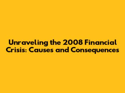 Unraveling The 2008 Financial Crisis: Causes And Consequences