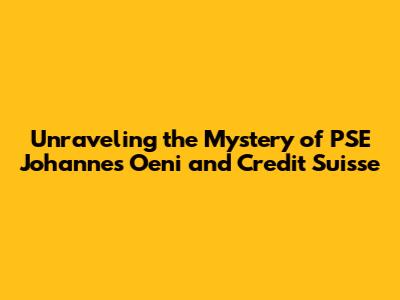 Unraveling The Mystery Of PSE Johannes Oeni And Credit Suisse