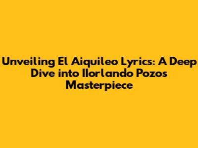 Unveiling 'El Aiquileo' Lyrics: A Deep Dive Into IIorlando Pozo's Masterpiece