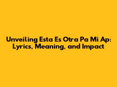 Unveiling 'Esta Es Otra Pa Mi Ap': Lyrics, Meaning, And Impact