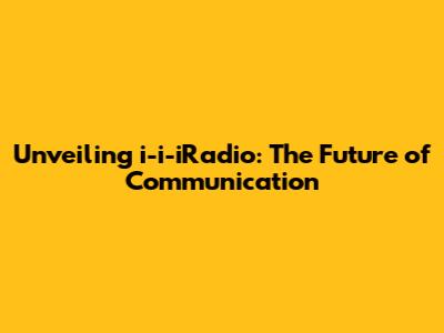 Unveiling I-i-iRadio: The Future Of Communication