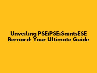 Unveiling PSEiPSEiSaintsESE Bernard: Your Ultimate Guide