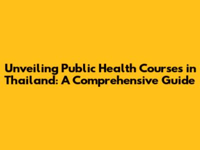 Unveiling Public Health Courses In Thailand: A Comprehensive Guide