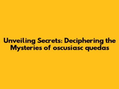 Unveiling Secrets: Deciphering The Mysteries Of Oscusiasc Quedas