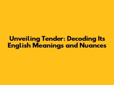 Unveiling 'Tender': Decoding Its English Meanings And Nuances