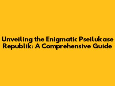 Unveiling The Enigmatic Pseilukase Republik: A Comprehensive Guide