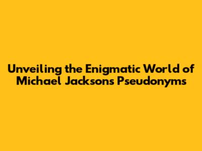 Unveiling The Enigmatic World Of Michael Jackson's Pseudonyms