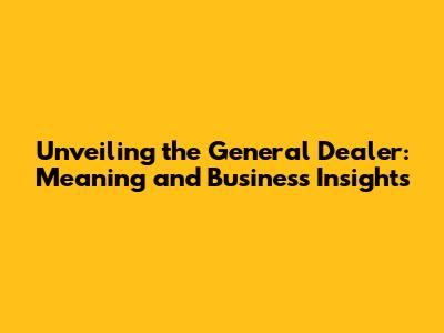 Unveiling The General Dealer: Meaning And Business Insights
