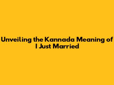 Unveiling The Kannada Meaning Of 'I Just Married'
