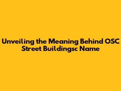 Unveiling The Meaning Behind OSC Street Buildingsc Name