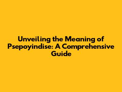 Unveiling The Meaning Of Psepoyindise: A Comprehensive Guide