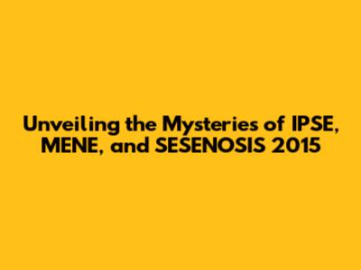 Unveiling The Mysteries Of IPSE, MENE, And SESENOSIS 2015