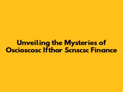 Unveiling The Mysteries Of Oscioscosc Ifthor Scnscsc Finance