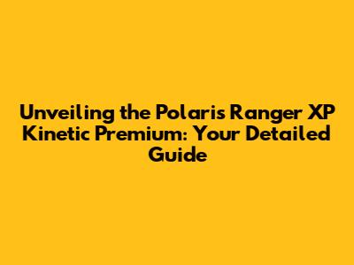 Unveiling The Polaris Ranger XP Kinetic Premium: Your Detailed Guide